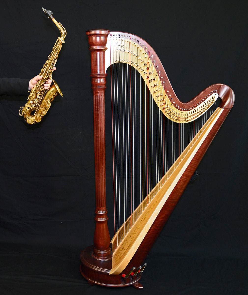 Die Kombination von Saxophon und Harfe ist nicht alltäglich, denn beide Instrumente ordnet man eher unterschiedlichen Musiksparten zu. Das Saxophon als typisches Jazzinstrument trifft hier auf ein typisches Orchesterinstrument, die Harfe.