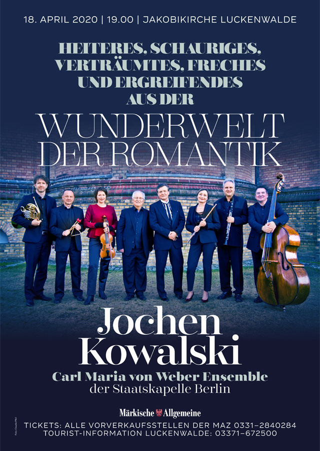 Weltstar Jochen Kowalski und das Ensemble Carl Maria von Weber der Staatskapelle Berlin bringen an diesem Abend Heiteres, Schauriges, Verträumtes, Freches und Ergreifendes zu Gehör.