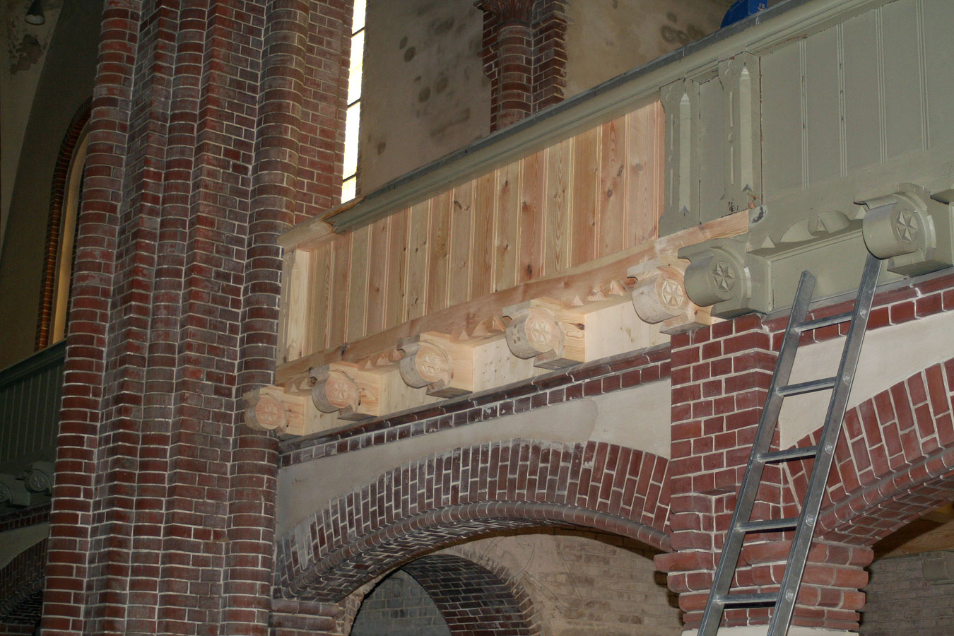 Einige Jahre später, sobald dem Förderverein die jeweiligen finanziellen Mittel zur Verfügung standen, wurde die Empore schrittweise wieder instand gesetzt.